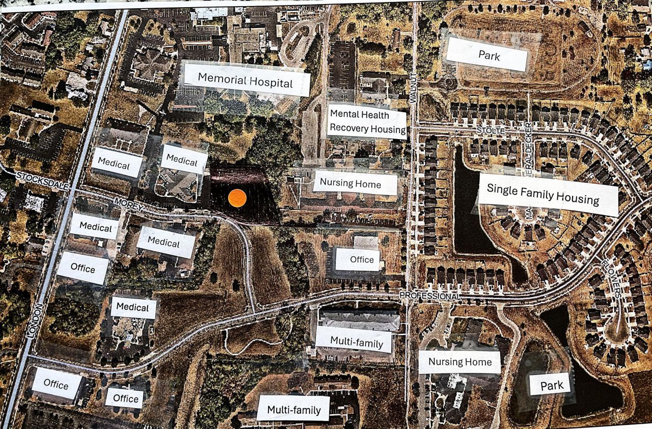 Lots of potential uses - HMD zoning district. Permitted uses include single family attached, low density multifamily, offices, medical, retail and restaurant. About .15 acres in flood plain in back and on the side. This acre is next to the hospital property and has medical buildings, nursing homes and apartments all around.