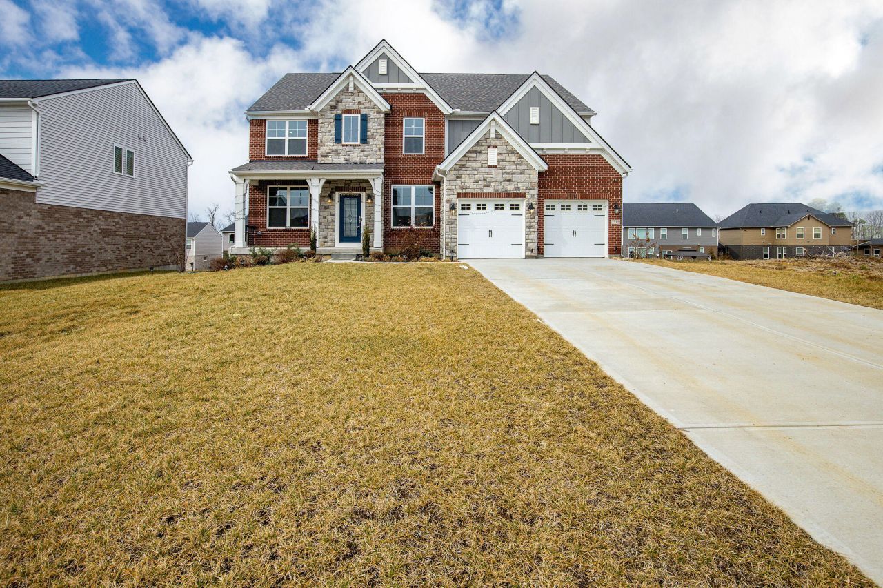 Amazing 5 bed 4 bath 3300+ Sqft Drees The Buchanan Q model with great inviting covered front porch, formal dining, office with French doors, family room with stone fireplace, casual dining, upgraded kitchen with large serving island, upgraded lighting fixtures, sunroom, 1st floor bedroom with full bath. Upgraded tiled bathrooms, floors, walk-in closets, etc. Located in Traemore Gardens in Union, Kentucky near school, restaurants and entertainment area. Move In Ready.