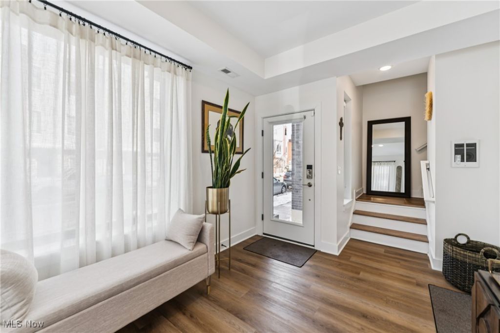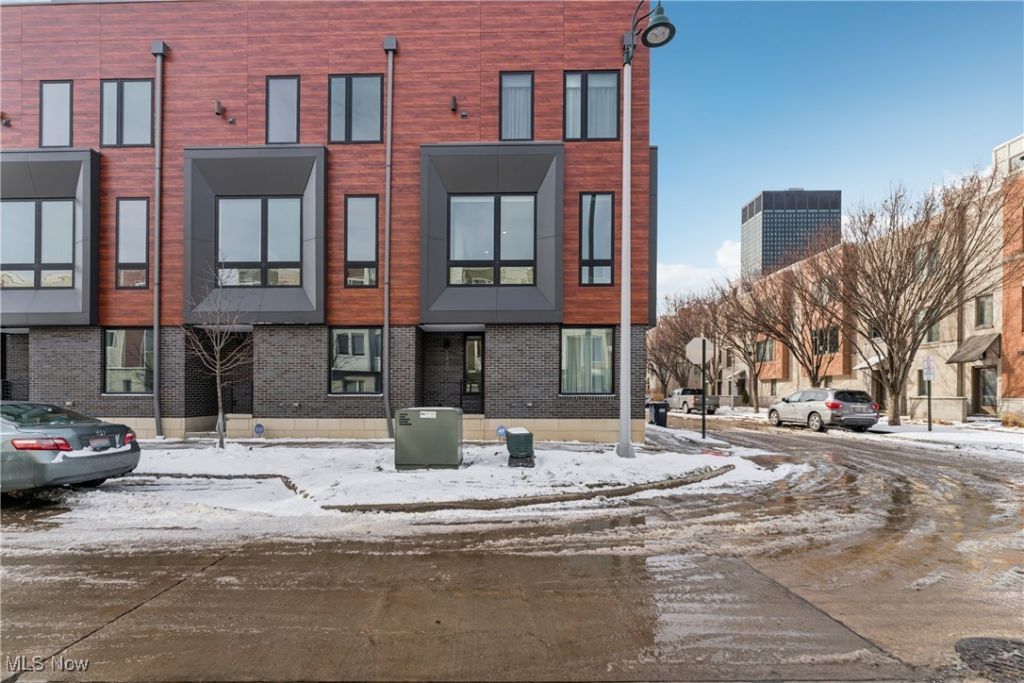 Discover the joy of modern living in the heart of Downtown Cleveland. This contemporary residence offers over 1,900 square feet of thoughtfully designed living space, plus an additional 210 square feet across a private balcony and rooftop deck. Elevate your lifestyle with premium finishes throughout, including striking black Andersen windows inside and out, along with upgraded hardwood and ceramic flooring. The chef-inspired kitchen features a generous stone island, 42-inch soft-close upper cabinets, a microwave drawer, stylish stainless range hood, a walk-in pantry, and seamlessly flows via sliding glass doors to a walk-out balcony enhancing both function and style. Other important features are a tankless water heater, heated garage, Nest climate control and security system. As an end unit, the home is filled with extra windows that flood the open, airy floor plan with natural light. Entertaining is effortless with a dedicated fourth-floor entertainment room, complete with a sleek wet bar and an attached rooftop deck. From here, enjoy sweeping, ever-changing views of Downtown Cleveland?all from the comfort of home. Approximately 11 years remain on the tax abatement!