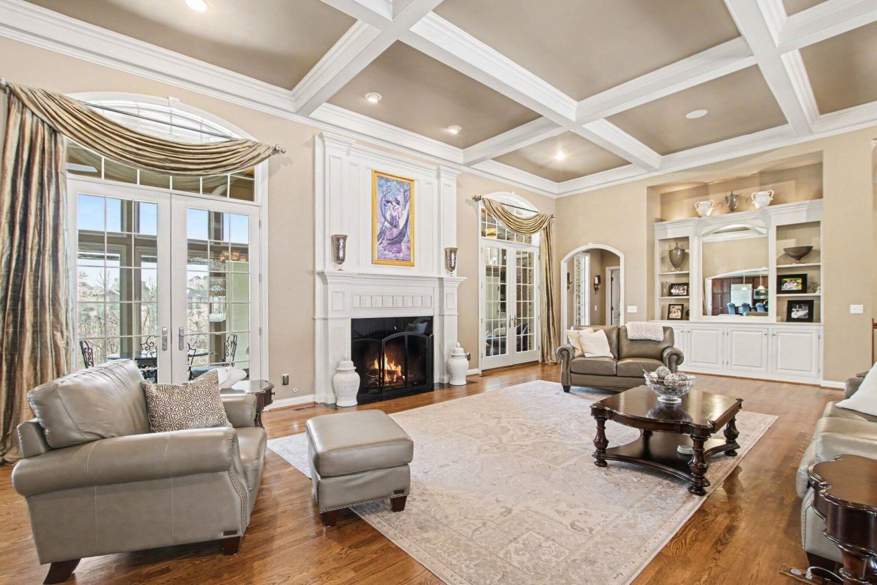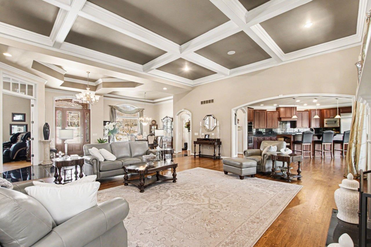 An Entertainers Dream designed for those who appreciate exceptional craftsmanship and unforgettable gatherings. This meticulously appointed, custom-built Jobe ranch is gracefully positioned on over two private acres, offering more than 7,500 finished square feet of refined living. A grand granite entry introduces coffered ceilings, rich hardwood flooring, intricate moldings, and handsome built-ins that define the homes timeless elegance. The gourmet kitchen, complete with Butlers pantry, was designed to impress?equally suited for intimate dinners or grand-scale celebrations. The walk-out lower level rivals private clubs, featuring a secluded speakeasy with wine alcove, an expansive pub-style bar, two bedrooms, two full baths, and a substantial workshop with secondary garage access. Enjoy four-season entertaining in the enclosed veranda or unwind beside one of three fireplaces. Evenings are best spent on the covered paver patio overlooking a serene wooded backdrop enhanced by professional outdoor lighting. Full brick construction, a 3-car garage, and a premier location near Downtown Cincinnati and the airport complete this extraordinary estate.