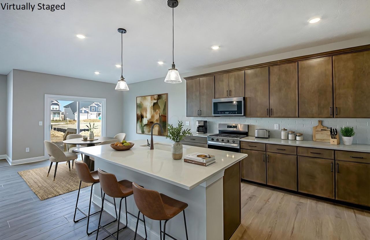 **OPEN HOUSE SAT 3/7 & SUN 3/8 12PM-4PM** This is a lovely new 4 bed 2.5 bath home in Amrine Meadows. The kitchen has stainless Whirlpool gas appliances, blaine burlap cabinets, miami vena quartz counters, brique white matte backsplash, an upgraded alpine white composite sink with a sleek moen faucet, a pantry, a large island with space for seating and beautiful pendant lighting. The primary suite has a private bath with a double bowl vanity, blanco maple quartz counter, a walk-in cosmopolitan tile shower, a linen closet, spacious his and hers walk-in closets, enclosed toilet area and a sitting space. An add'l 3 beds with walk-in closets, a full bath with a double bowl sink, multi use loft and laundry. An eating space, an extended great room, a formal dining space, a flex living space with doors, a powder room and a 2 car garage with storage space. Full basement with rough-in plumbing and an egress window. Oil-rubbed bronze finishes and fixtures. Stained burlap rail and wrought iron spindles. Smart home features included. Great location with easy access to everyday conveniences. This beautiful home is ready for your visit today.