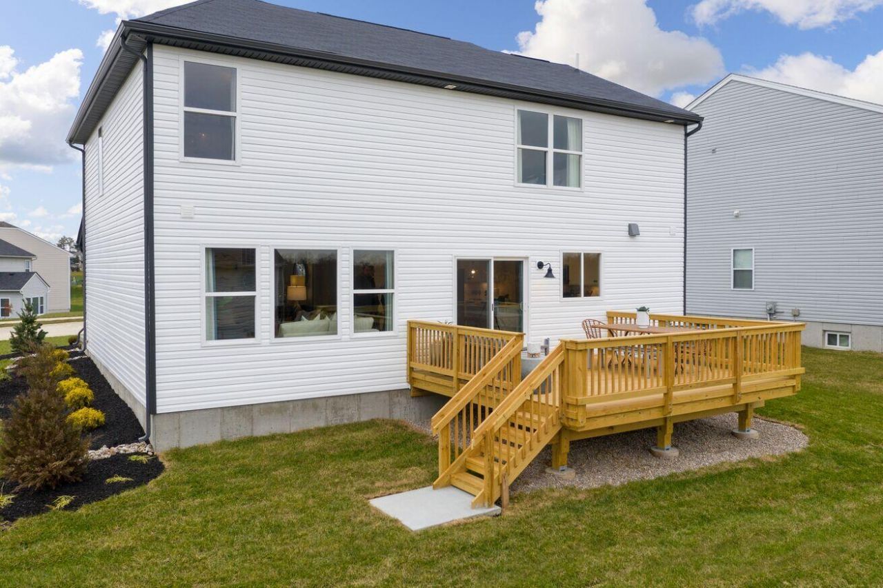 Former Model Home! The Saxon presents a compact plan with lots of style. Step inside and discover a formal dining room off the inviting foyer. Youll enjoy relaxing in the open family room, breakfast room and kitchen. Upstairs, youll find a private primary suite and bath with enormous walk-in closet, two additional bedrooms, a loft, full bath and convenient laundry room. Full finished basement with a full bath makes it easy to plan for entertaining. 12 x 10 wood deck off the rear of the home is a useful addition.