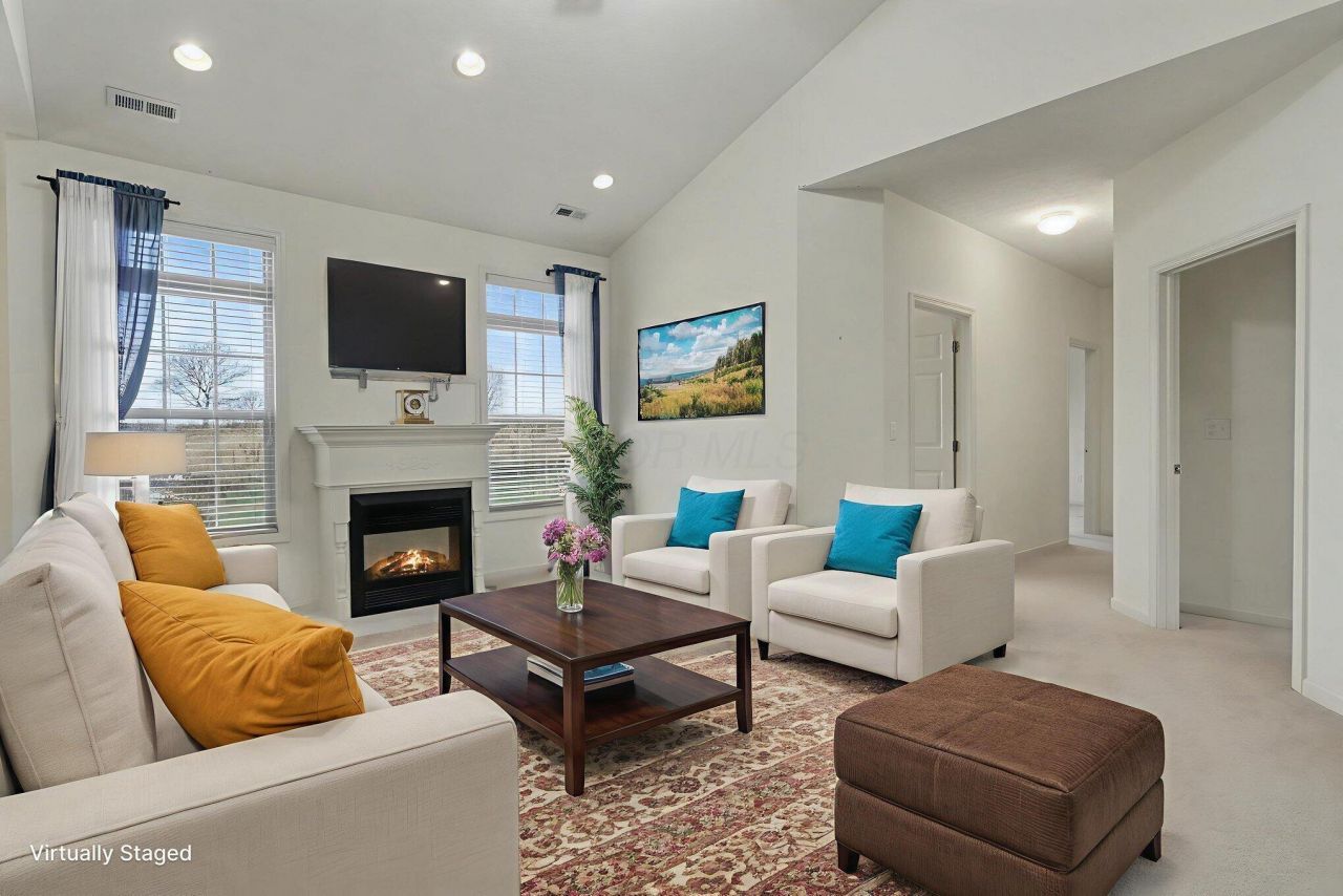 Hard to find ranch style condo in Heathergreen, across from the Pickaway Country Club. This home is an end unit with covered front porch and a large private back patio to take in the beautiful view. Very well maintained throughout and boasts an open floor plan with vaulted ceilings, electric fireplace in the great room. The kitchen features ample cabinetry & breakfast bar open to the greatr oom, dining room and 4 season room. Lots of natural lighting! Among the 3 bedrooms, the main bedroom hosts a large walk in closet with lots of storage and private bath with walk in shower. Laundry room is also on the 1st floor. All of your everyday conveniences are in close proximity to your new home! American Home Shield Coverage. All parties acknowledge the property is being sold 'as is' .