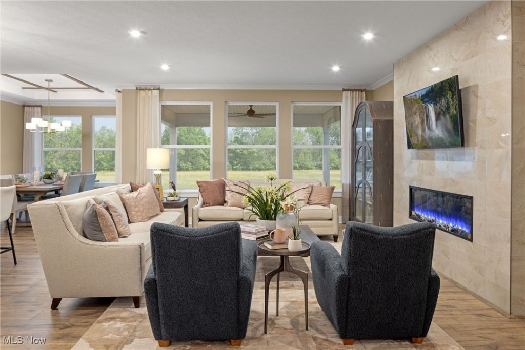Spring move-in opportunity in Carpenter Glen, an upscale Brunswick community featuring award-winning Drees Homes. This stunning Lyndhurst ranch with a walkout finished basement offers elegant design and exceptional functionality. An inviting foyer opens to a private study, ideal for work or quiet retreat. The family foyer off the garage provides a convenient drop zone, while the oversized laundry room offers abundant storage. A discreet powder room is thoughtfully tucked away for privacy. The open-concept living space showcases a bright family room with a contemporary fireplace and wall of windows, flowing seamlessly into the oversized gourmet kitchen with a generous island, walk-in pantry, and adjacent formal dining area?perfect for everyday living and entertaining. A desirable split-bedroom layout offers two bedrooms and a full bath on one side of the home, while the private primary suite is located on the opposite side. The luxurious owner's retreat features a spa-inspired bath with dual vanities, tiled shower, and an expansive walk-in closet. Step outside to the covered deck from either the dining area or primary suite to enjoy effortless indoor-outdoor living. Entertaining continues in the 9' walkout finished lower level, complete with a large recreation room and a stylish ¾ bath. The Lyndhurst at Carpenter Glen delivers upscale ranch living in an exclusive community. Schedule your showing today this exceptional home won't last. Images for representation only.