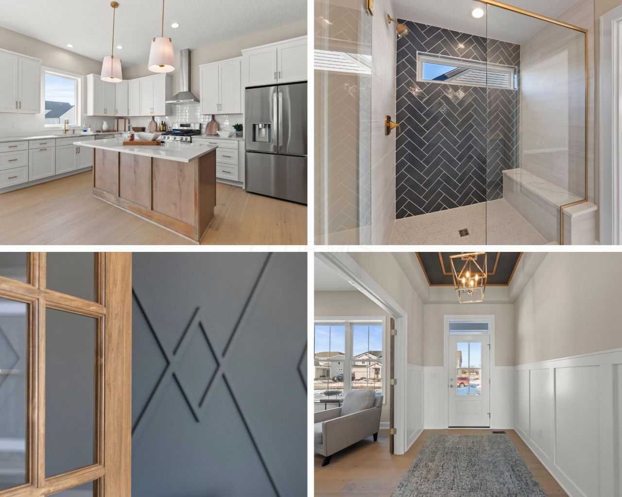 WATCH THE VIDEO and 3D TOUR! From the curb, you'll immediately recognize the difference in quality and craftsmanship that sets this custom home by ICH Builders apart from typical production homes, featuring Hardie Plank siding, stone accents, designer lighting, and an insulated garage door.Inside, premium RainTree engineered hardwood flooring flows throughout most of the main level, complemented by custom wainscoting and board and batten detail in the entry and office. The main level full bath showcases designer tile and upscale finishes, while the mudroom/ first floor laundry offers both style and function.The kitchen serves as the centerpiece, featuring soft close cabinetry, remarkable countertops, stainless appliances, and a sleek vent hood. The adjoining great room is filled with natural light from expansive Andersen windows and anchored by a custom gas fireplace, creating an inviting yet refined space.Upstairs, generously sized bedrooms and a beautifully finished full bath continue the elevated design. The owner's suite overlooks the pond and features a custom accent wall, spa inspired bath with floor to ceiling tiled walk in shower, and walk in closet. The full basement offers 9 ft ceilings and a bath rough in, ready for future finishing.Located just moments from vibrant Downtown Grove City, with pond views and neighborhood pickleball courts, this home offers a rare combination of luxury materials, custom craftsmanship, and an exceptional location!