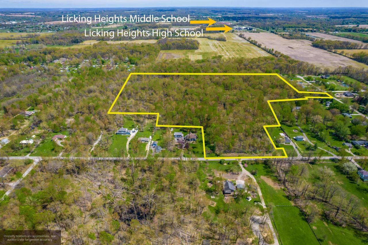 Location, location!!! Just 5.5 miles from the new INTEL project and only a 10-minute drive away. Currently zoned 'Residential', this property is suitable development land for a new subdivision or multi-acre executive homesites. This densely wooded property, with a small natural pond, has one large private & well-appointed ranch-style residence, a storage barn for landscaping equipment + a small shed. Beautiful mature hardwoods permeate the acreage with a large opening for the single-family home, with greenspace. Over 330+ feet of frontage on Dixon Road with a side access drive for ingress/egress on Sims. Surrounded by small farmettes and residential properties. Land could easily be divided by next owner. Around the corner from the Licking Heights Middle & High Schools. Prime opportunity!
