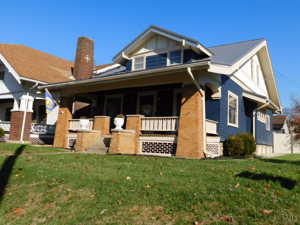 Beautiful and spacious! This historic home is full of character! Easy access to Gardner Park, with its football field, tennis/pickle ball courts, playgrounds, picnic areas and walking trail. 3 bedrooms, 2 full baths. This lovely home offers hardwood floors and wood beams, built-in bookcases and built-in seating by the fireplace. Walk through the glass doors into the formal dining room, with its wood beams, and built-in buffet. The door leading into the kitchen has stained glass. You will love preparing meals in the kitchen, with its gas stove, farmhouse sink, and island with solid wood top. The first floor offers 2 bedrooms and a full bath. Huge second floor primary suite has attached office and full bath. Discover the hidden room behind the bookcase! Private patio has a hot tub, and leads to the oversized 2 car garage. Large front covered porch with new decking. 2266 sq ft per auditor. Chimney reworked in 2024; exterior paint, new metal roof and new porch deck in 2025.