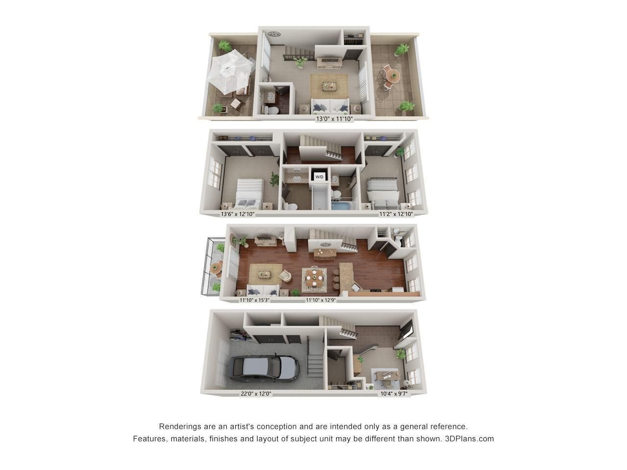 Experience elevated urban living in this beautifully updated, multi-level Durham plan townhome-style condo, ideally located in one of Downtown Columbus' most walkable and energetic neighborhoods. Just steps from the Scioto Mile and Bicentennial Park, with easy access to the Arena District and German Village, this home offers an exceptional blend of location, space, and flexibility.Offering approximately 1,850 square feet, this residence features three generously sized bedrooms, two full baths, and two half baths across thoughtfully designed levels. The entry-level flex space provides exceptional versatility, ideal for a home office, studio, workout space, or private client entrance.The main living level showcases an open-concept layout filled with natural light and seamless flow between the living, dining, and kitchen spaces. Step outside to a private balcony perfect for morning coffee or evening relaxation. The kitchen has been updated with contemporary finishes, sleek cabinetry, and premium appliances, balancing modern design with everyday functionality.Upper-level bedrooms offer privacy and comfort, including a spacious primary suite with ample closet space and a spa-inspired bath. A private upper-level suite provides additional flexibility for guests, family, or creative use and features two private balconies with city and skyline views.Additional highlights include updated flooring and lighting, high-efficiency systems, and attached garage parking, a rare and valuable feature in this location. Whether you're seeking a full-time residence or a low-maintenance urban retreat, this Durham plan townhome delivers style, convenience, and immediate access to everything downtown Columbus has to offer.