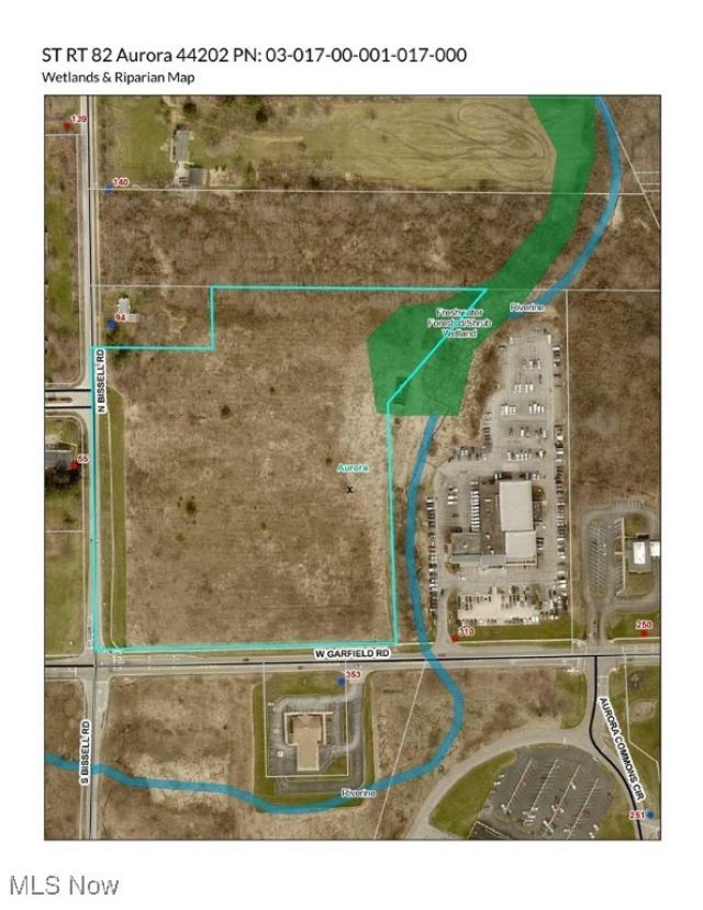 Prime High Visibility Corner Lot Now available approximately 14.15 acres of C2-zoned commercial land ideally located at the corner of N Bissell Road and W Garfield Road in Aurora, Ohio. This strategic corner lot offers an excellent opportunity for developers and investors to build a wide range of commercial uses in a growing and desirable area. This Commercial Shopping District, supports the development of planned integrated groupings of retail, service, and professional establishments. The district is intended to provide both convenience and comparison shopping, as well as personal and business services for the surrounding community. The zoning requires parcels to be approx.10 acres, and at 14.15 acres, this lot meets the criteria and offers plenty of room for creativity and future expansion. The east corner of the lot is relatively flat, transitioning to a gentle elevation toward the northeast corner, adding interest and flexibility to the site plan. The land is mostly level with light rolling features, making it suitable for a variety of commercial structures including retail centers, restaurants, offices, and service-based businesses. This property represents a rare and valuable development opportunity in a location that continues to grow. Whether you're looking to build a shopping plaza, restaurant complex, or a mixed-use commercial hub, this land is ready for your vision. Contact us today to learn more or schedule a walk of the property.